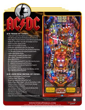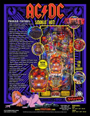 Το δεύτερο απο τα 3 μοντέλα της σειράς AC DC σε έκδοση PREMIUM . Με αμείωτο ενδιαφέρον στο παίξιμο του παιχνιδιού και φυσικά με την στιβαρότητα και την ποιότητα του επαγγελματικού φλιππερ απο την STERN .Φυσικά συνδιάζονται με τα ποιό συγχρονα συστήματα για μείωση προβλημάτων καθώς και led φωτισμούς και χειροποίητα γραφικά ,επίσης υπάρχουν σκηνες βίντεο που εναλάσσονται κατα την διάρκεια του παιχνιδιού , Επιλογή απο πασίγνωστα τραγούδια AC DC , κεντρική ράμπα χαραγμένη με LASER , δεύτερο πάτωμα με 2 φλίπερ επιπλέον και πολλα ακόμα …