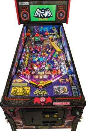 Το συλλεκτικό μοντέλο της σειράς BATMAN 66 σε έκδοση SUPER LIMITED EDITION . Μόνο 80 κομμάτια για όλο το κόσμο υπογεγραμμένα προσωπικα απο τον ίδιο τον ADAM WEST που υποδυόταν τον BΑTMAN στη θρυλική τηλεοπτική σειρά . Με αμείωτο ενδιαφέρον στο παίξιμο του παιχνιδιού και φυσικά με την στιβαρότητα και την ποιότητα του επαγγελματικού φλιππερ απο την STERN .Φυσικά συνδιάζονται με τα ποιό συγχρονα συστήματα για μείωση προβλημάτων καθώς και led φωτισμούς και χειροποίητα γραφικά ,επίσης υπάρχουν σκηνες βίντεο που εναλάσσονται κατα την διάρκεια του παιχνιδιού , κεντρική ράμπα χαραγμένη με LASER , και πολλα ακόμα …