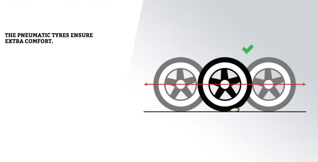 Τα μοντέλα CROSS της σειράς BUDDY διαθέτουν τρακτερωτά λάστιχα για κίνηση εκτός δρόμου με εσωτερική σαμπρέλα με αέρα εξασφαλίζοντας άνεση στα εμπόδια του δρόμου