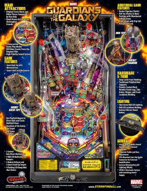 Το δεύτερο από τα 3 μοντέλα της σειράς GUARDIANS OF GALAXY σε έκδοση PREMIUM . Με αμείωτο ενδιαφέρον στο παίξιμο του παιχνιδιού και φυσικά με την στιβαρότητα και την ποιότητα του επαγγελματικού φλίπερ από την STERN .Φυσικά όπως όλα τα STERN PINBALL συνδυάζονται με τα πιο σύγχρονα συστήματα για μείωση προβλημάτων , συνεχή updates λογισμικού καθώς και led rgb φωτισμούς και χειροποίητα γραφικά