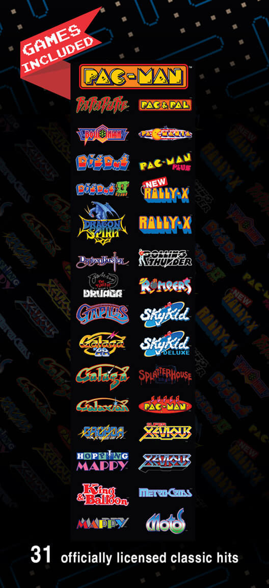 Galaga™, Galaga 88™, Galaxian™, Mappy™,