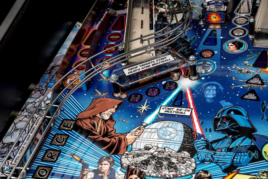 STAR WARS PIN Home Edition Another innovation from STERN. A pinball machine cleanly designed for the home with all the good playfulness of the original pinball machines, with the playfield in the original dimensions with undiminished interest in playing the game and of course with the robustness and quality of the professional pinball machine from STERN Having removed coin acceptor mechanisms, as well as a slightly smaller dimension at an incredible price, of course brand new but of course combined with the most modern systems to reduce problems, of course there are LED lights, handmade graphics, ramps engraved with precision LASER and in general all modern construction experience STERN.