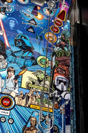 Το STAR WARS PIN Home Edition άλλη μια καινοτομία από την STERN .Ένα φλίπερ καθαρά σχεδιασμένο για το σπίτι με όλη την καλή παικτικότητα των αυθεντικών φλίπερ , με το playfield στις αυθεντικές διαστάσεις με αμείωτο ενδιαφέρον στο παίξιμο του παιχνιδιού και φυσικά με την στιβαρότητα και την ποιότητα του επαγγελματικού φλίπερ από την STERN .Έχοντας αφαιρέσει μηχανισμούς κερματοδέκτη ,καθώς και λίγο μικρότερη διάσταση σε απίστευτη τιμή φυσικά ολοκαίνουργιου αλλά φυσικά συνδυασμένο με τα πιo σύγχρονα συστήματα για μείωση προβλημάτων φυσικά δεν λείπουν οι led φωτισμοί τα χειροποίητα γραφικά οι ράμπες χαραγμένες με LASER ακριβείας και γενικότερα όλη η σύγχρονη κατασκευαστική εμπειρία της STERN.