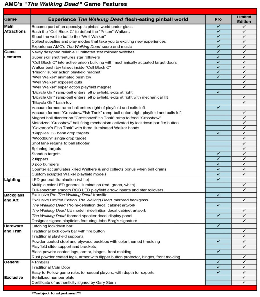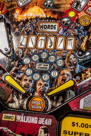 Το πρώτο απο τα 3 μοντέλα της σειράς WALKING DEAD σε έκδοση PRO . Με αμείωτο ενδιαφέρον στο παίξιμο του παιχνιδιού και φυσικά με την στιβαρότητα και την ποιότητα του επαγγελματικού φλιππερ απο την STERN .Φυσικά συνδιάζονται με τα ποιό συγχρονα συστήματα για μείωση προβλημάτων καθώς και led φωτισμούς και χειροποίητα γραφικά ,επίσης υπάρχουν σκηνες βίντεο που εναλάσσονται κατα την διάρκεια του παιχνιδιού , κεντρική ράμπα χαραγμένη με LASER , και πολλα ακόμα …